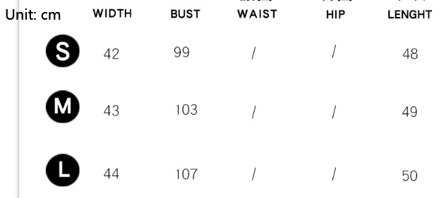 Note: 1. Asian sizes are 1 to 2 sizes smaller than European and American people. Choose the larger size if your size between two sizes. Please allow 2-3cm differences due to manual measurement. 2. Please check the size chart carefully before you buy the item, if you don't know how to choose size, please contact our customer service. 3.As you know, the different computers display colors differently, the color of the actual item may vary slightly from the following images.